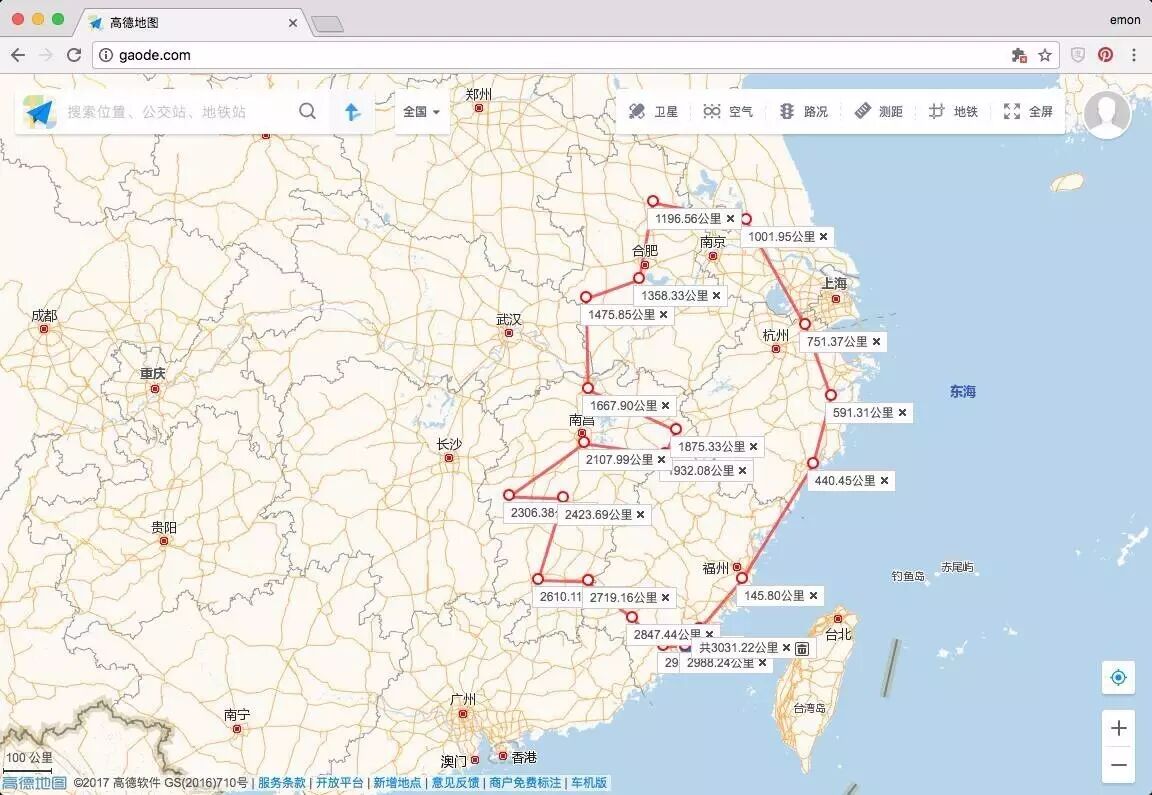 9天3000多公里,亲赴华东、华中地区支持当地合作伙伴。从厦门出发,途径温州-嘉兴-苏州-无锡-盐城-宿迁-九江-上饶-南昌-宜春--宜章-赣州-龙岩-漳州-厦门。期间报废一条轮胎,日夜兼程。最快记录用24小时跨越两个省,到访3个城市。